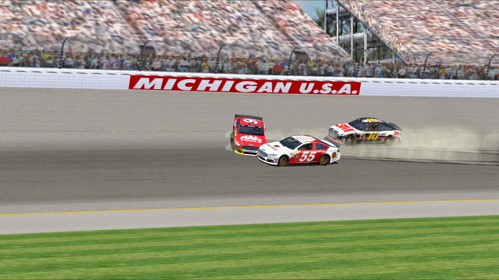 The final 9 laps and we were all gunning for position when Jimmie, once again, caused issues. I ended up getting loose, Darrel rocked Johnson around the wall in retaliation, and Scot spun Hamlin in the background for some reason.