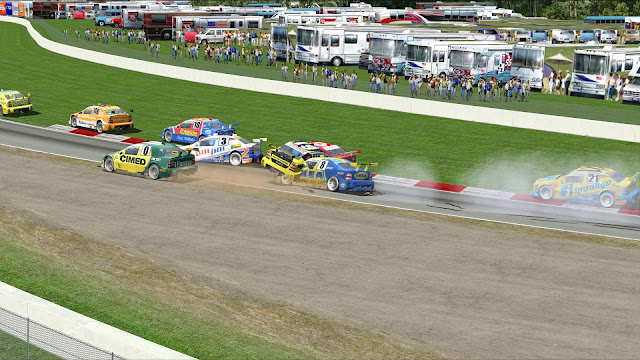 Eventually, Tnadz caught up and was simply looking to pass but there was traffic with Caca Bueno. The two touched and Riggleman was sent wide.